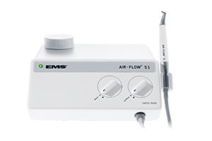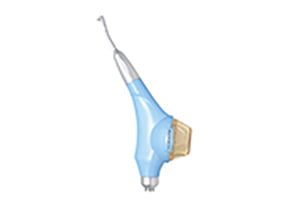 水と微粒子とエアーの力で歯のステイン (着色汚)を除去します。